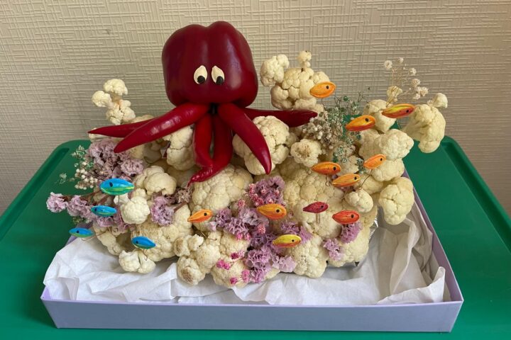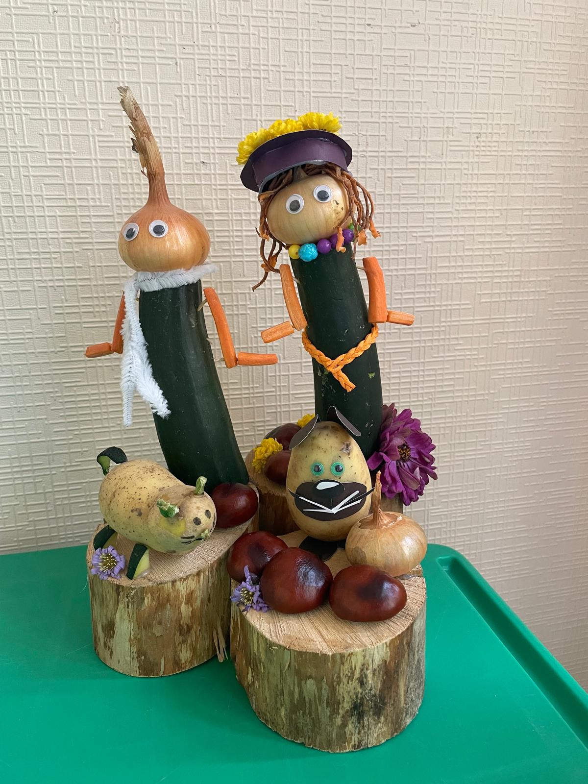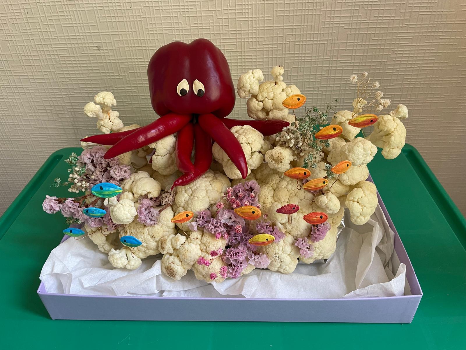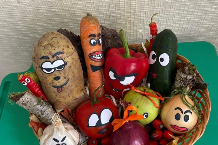 - attīstīt radošo domāšanu un iztēli, pārvēršot vienkāršus dārzeņus vai augļus par dzīvniekiem, zivīm vai veselu meža dzīvi;
